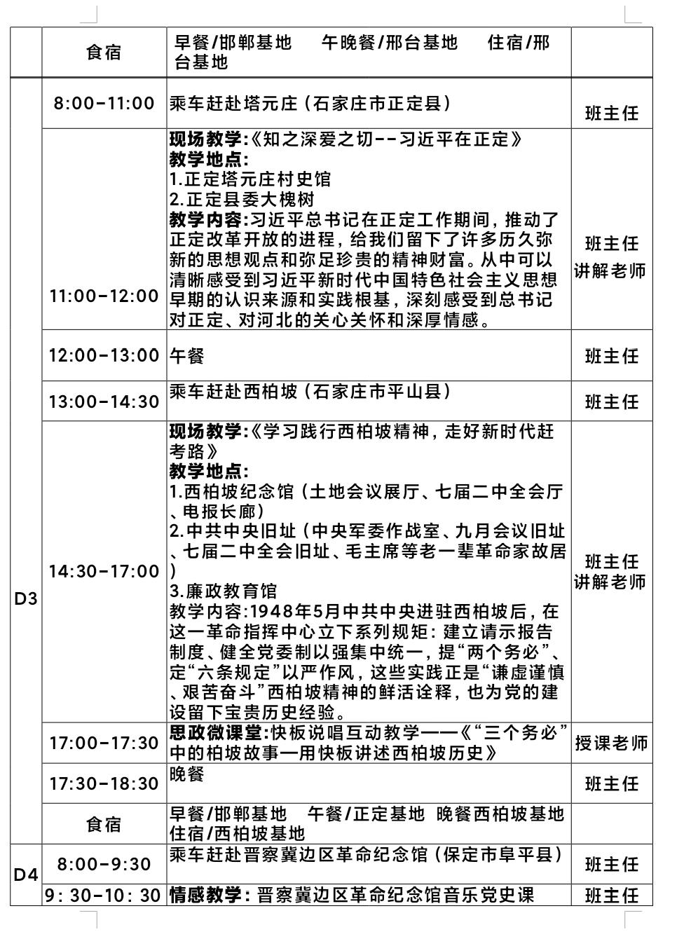 西柏坡与正定红色教育培训4天行程安排