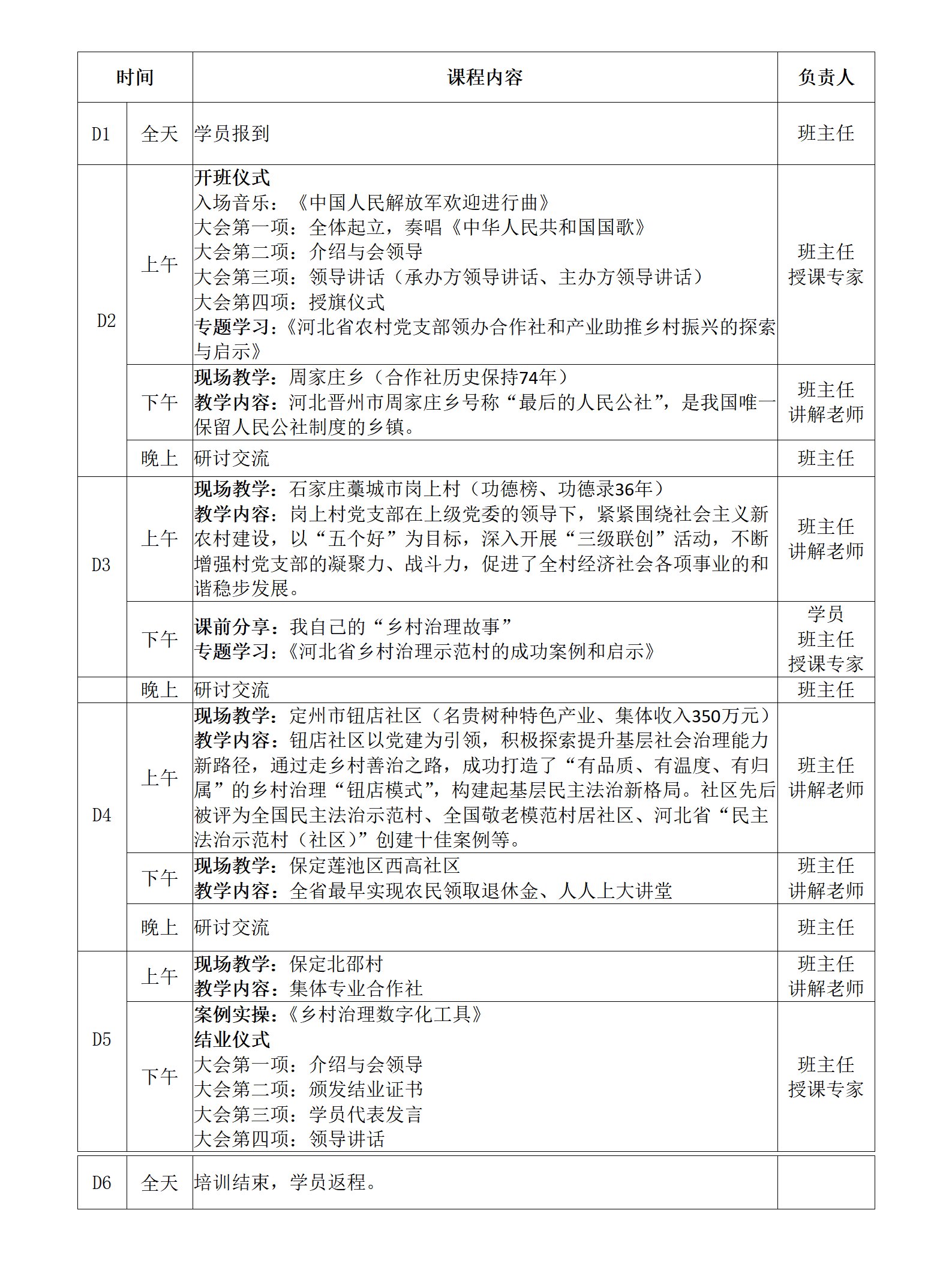 西柏坡、雄安、冉庄……6天培训课程安排