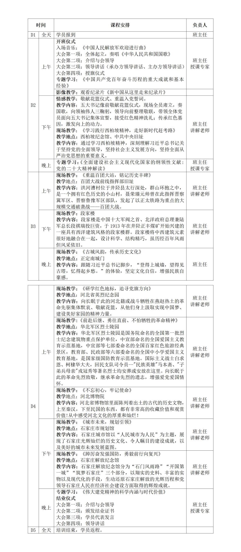 西柏坡、雄安、冉庄……6天培训课程安排